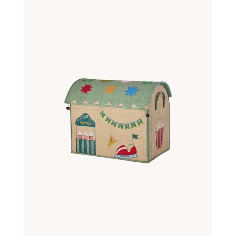 RICE Raffia Opbevaringshus - Fun Fair Theme - Lille - Blå/Grøn