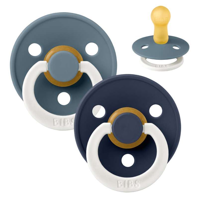 Bibs Кръгъл Colour Биберон - 2-пак - р-р 2 - естествен каучук - GLOW - Петролиум/Дълбок Космос