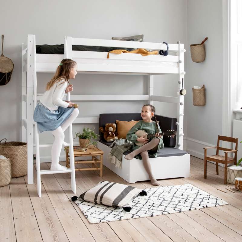 Високото легло от Hoppekids е перфектно за по-голямото дете, което желае повече пространство на пода в стаята. С високото легло наистина оползотворявате всяка квадратна метър в стаята.