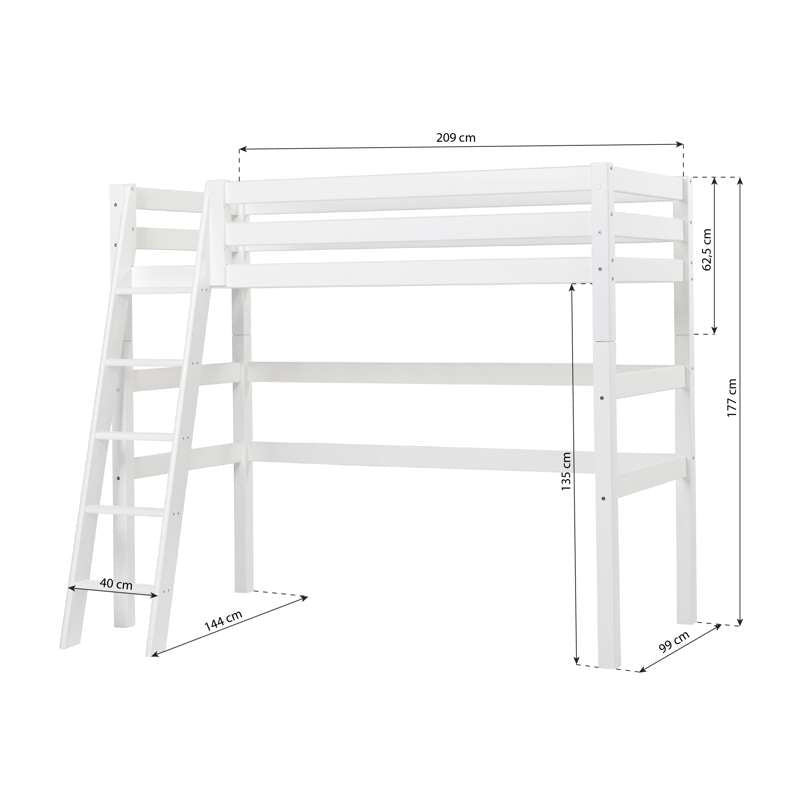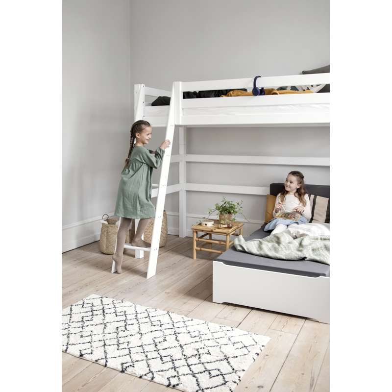 Hoppekids ECO Luxury - Висока легло - 90x200 см. - Наклонена стълба - Гъвкава основа за вграждане - Бяла