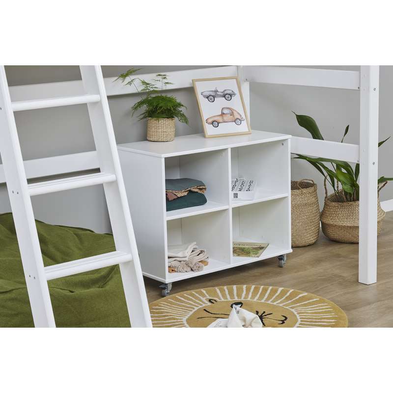 Голямото размер 90x200 см предлага много пространство за растеж и детето може да използва леглото, докато не е готово за et тийнейджърска стая. То е достатъчно голямо, за да можете да легнете в леглото, докато четете приказка за лека нощ. Високото легло може без проблем да бъде преобразувано в юношеско легло или в едно от другите легла в серията ECO Luxury, ако се добави et нов модул.