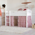 Forhænget skaber også en hyggelig hule under den halvhøje seng, som er perfekt til leg eller når dit barn har brug for en lille pause fra resten af verden. Dekorér eventuelt hulen med en madras, tæpper, puder, lyskæder og andre hyggelige sager.