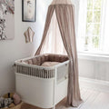 Сенникът е изработен от сертифициран органичен памук в изключителна доби тъкан, която е едновременно практична и декоративна. Лекото качество на сенника позволява на въздуха да циркулира свободно, създавайки et приятно обкръжение за вашето дете.