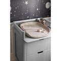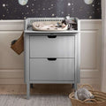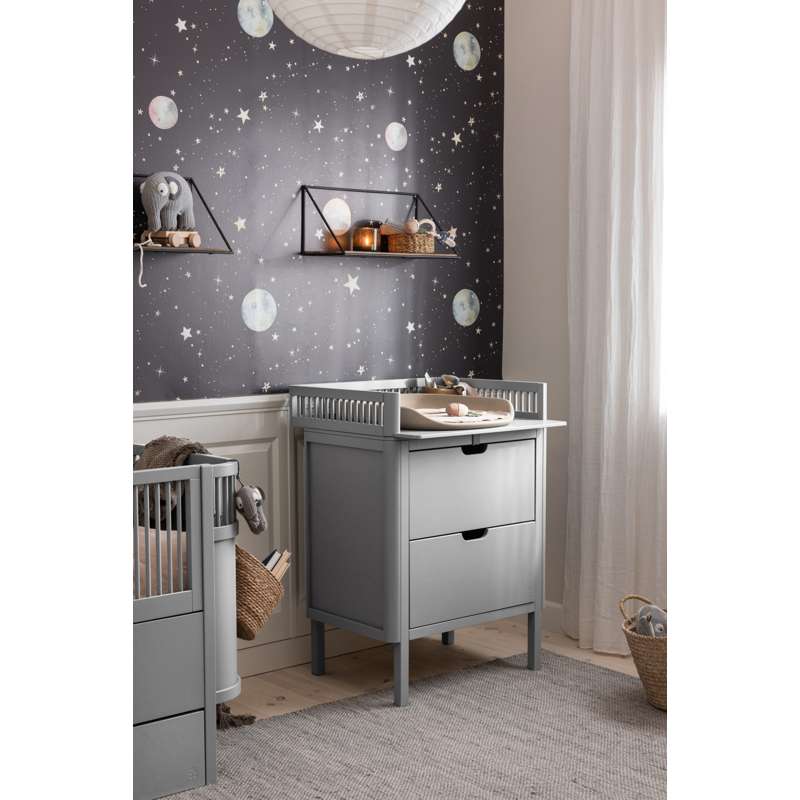 Работната височина от около 89 см ви осигурява добра работна поза, а двата просторни чекмеджета осигуряват място за всички неща, които са необходими на пеленалната площ. Et закръгленото, изсечено дръжка в средата на чекмеджето го прави лесно за отваряне, а функцията за меко затваряне гарантира, че то се затваря без да хлопа.