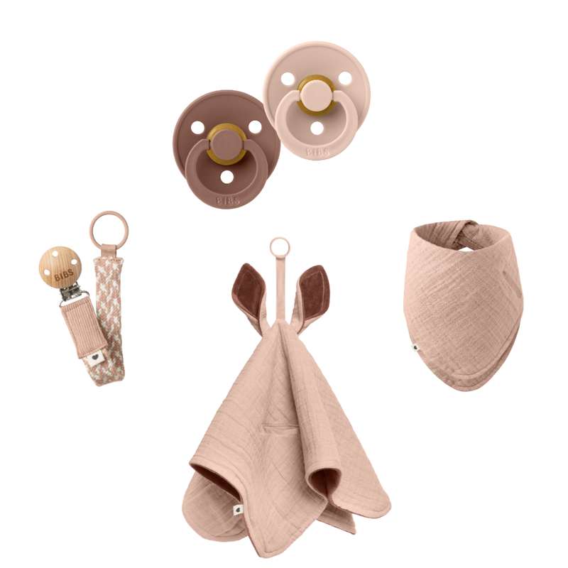 BIBS Accessories - Bandana Bib and Pacifier Clip - Liberty - Eloise/Blush