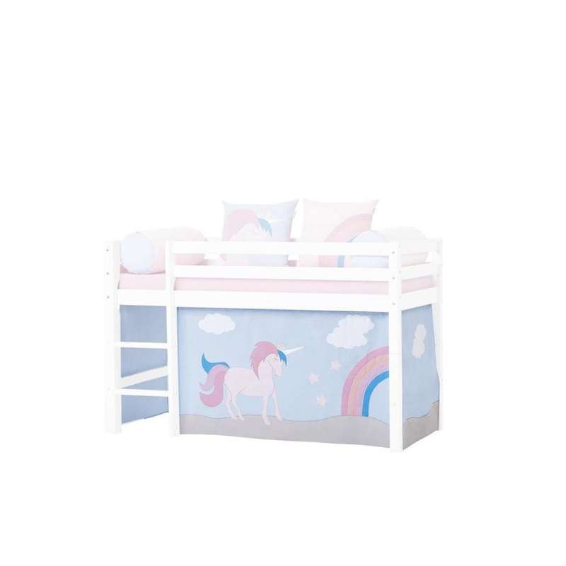 Dette forhæng fra universet Unicorn fra Hoppekids fås til Hoppekids’ køjesenge, halvhøj og mellemhøj senge....
