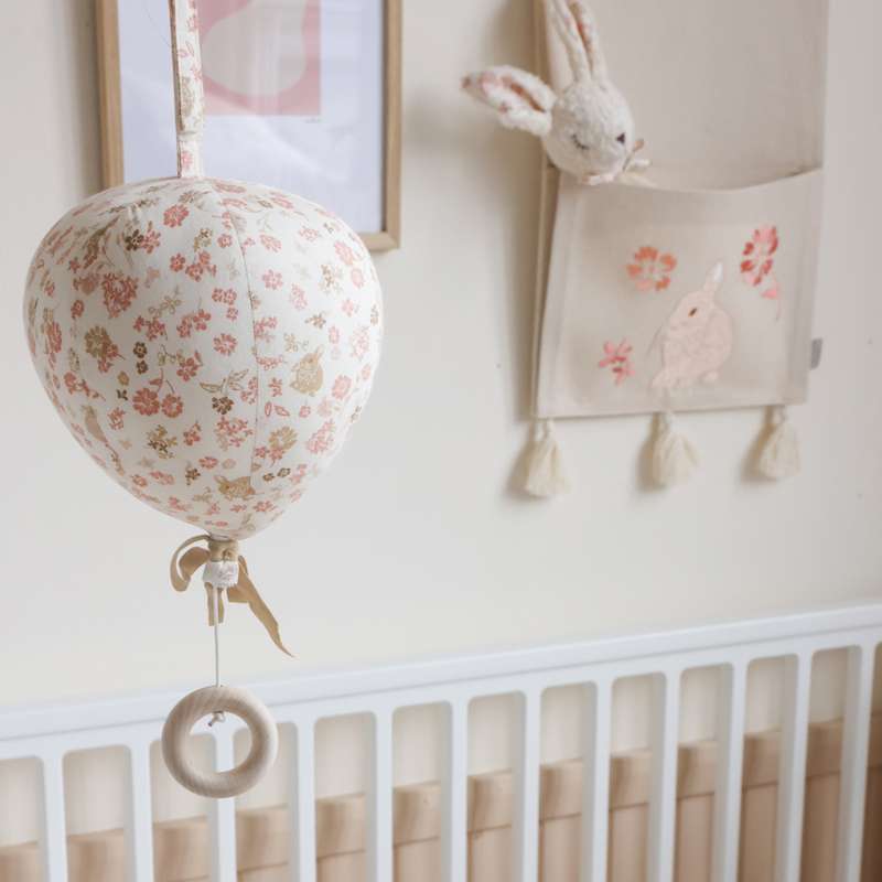 When the mobiles are made of natural materials and treated with paint and oil that are completely free of harmful chemicals, you can safely give the baby the mobile to hold so that they can also explore it with their hands and mouth. Just remember to keep an eye on the baby, as most mobiles also have several strings that can become tangled.