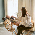 Leander dětská vložka do vysoké židle je dánský design vysoké kvality a byla testována na Technologickém institutu, aby se zajistila maximální bezpečnost. Je lehká ve svém designu a následuje přirozené pohyby vašeho dítěte. Dětská vložka je snadno montovatelná, snadno se skládá a může být uložena například v zásuvce nebo et skříni, když se nepoužívá. Pokud máte na své Leander vysoké židli namontovanou bezpečnostní tyč, nezapomeňte ji odstranit před montáží dětské vložky.