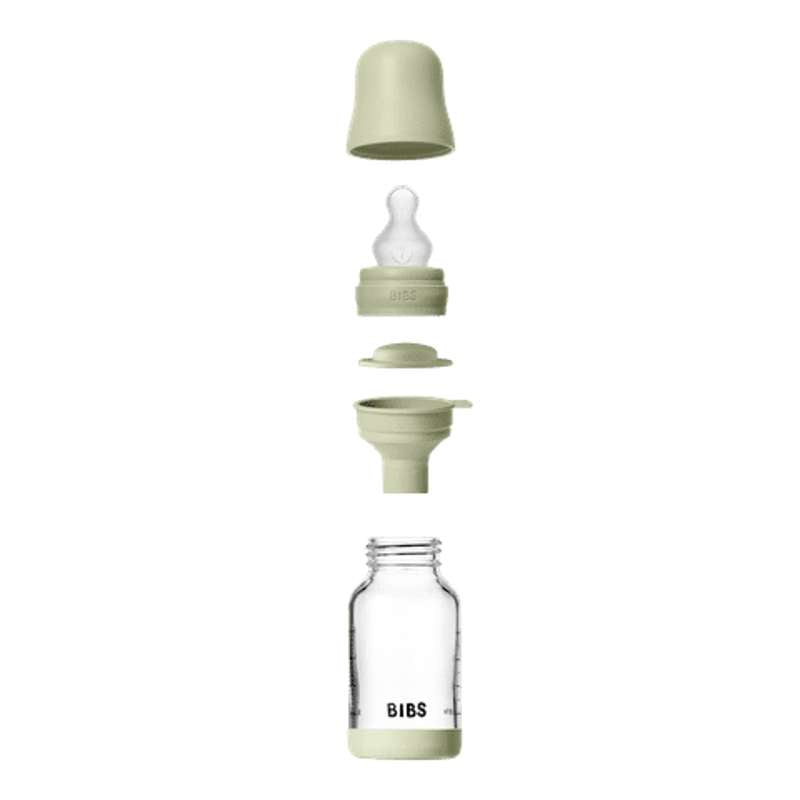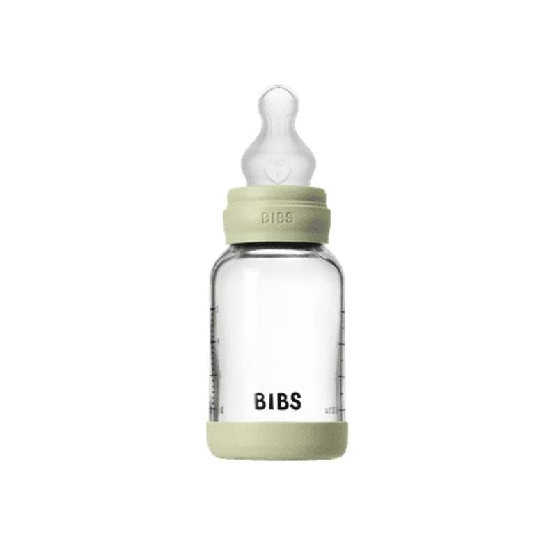 BIBS Bottle - Sutteflaskesæt - Glas - Silikone/Slow Flow/Rund - 120 ml. - Sage