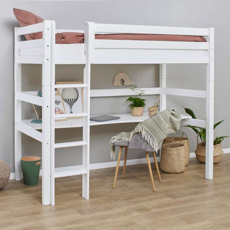 Hoppekids ECO Luxury - Højseng m. Bordplade - 90x200 cm. - Hvid