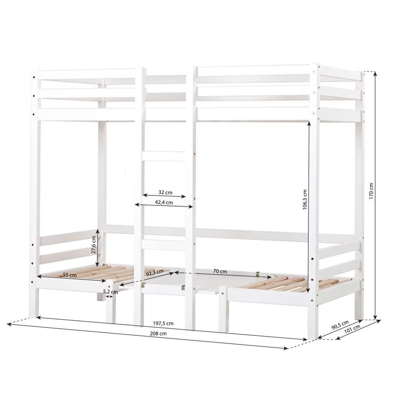 Denne smarte og alsidige ECO Dream JUMBO Etageseng i størrelse 90x200 cm fra Hoppekids giver jer den optimale løsning til børneværelset. Den underste seng kan nemlig både bruges som legebord og som soveplads. Sengen er svanemærket og er overfladebehandlet med miljøvenlig, vandbaseret lak.