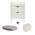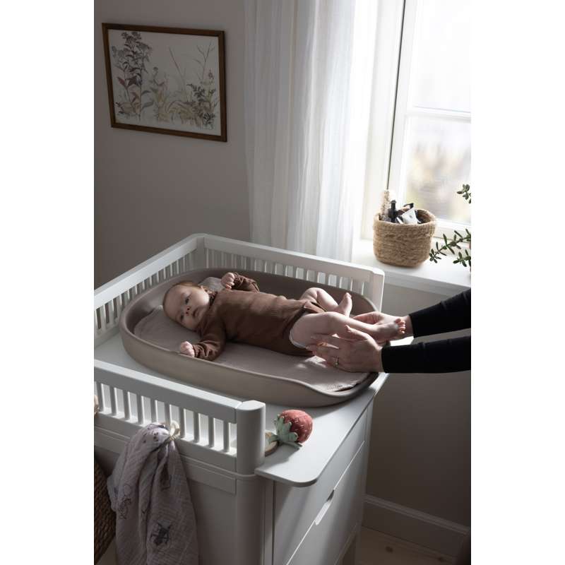 Populární a krásný přebalovací stůl v Classic White od dánské Sebra, spolu s Sebra přebalovací podložka v barvě Jetty Beige a 5 ekologickými látkovými plenkami/minisvůb (80 x 80 cm) od Naturebaby. Perfektně ladí s populární Sebra postelí a ozdobí jakýkoli pokoj v bytě nebo domě.