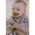 Der Schnuller von BIBS ist der ergonomischste Schnuller auf dem Markt. Er besteht aus 100% Naturkautschuk mit einem Ventil im Saugerteil, das es Ihrem kleinen Menschen erleichtert, die Luft aus dem Schnuller zu drücken. Auf diese Weise formt sich der Schnuller genau wie die Brust der Mutter.