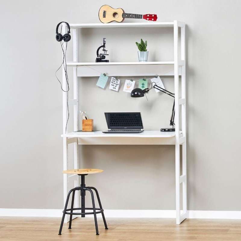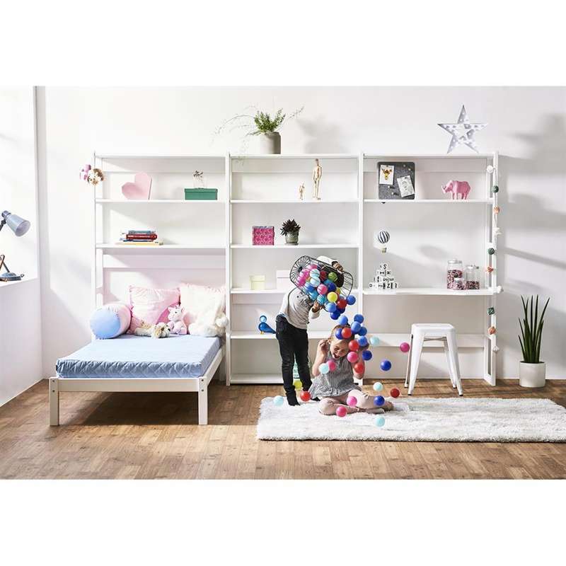 Hoppekids STOREY - Reol - 2 Sektioner m. 4 Hylder - Skriveplade og Seng - Flere Størrelser - Hvid