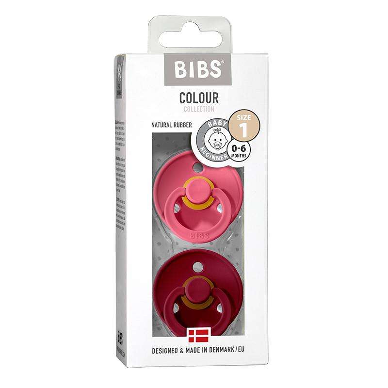 Bibs Στρογγυλή Colour Πιπίλα - 2-Πακέτο - μεγ. 1 - φυσικό καουτσούκ - Κοραλλί/Ρούμπι