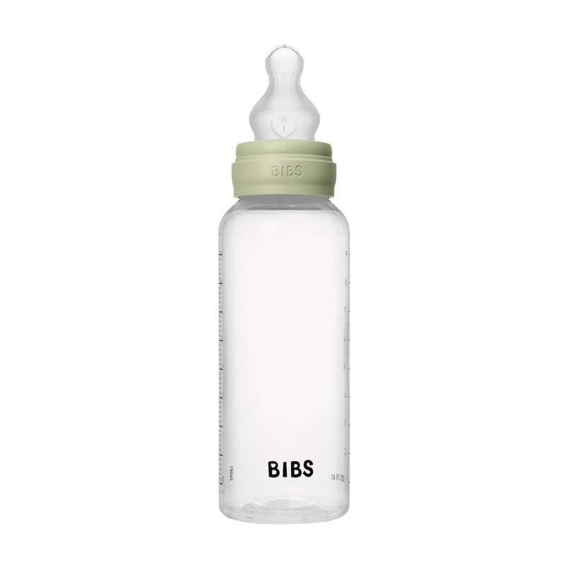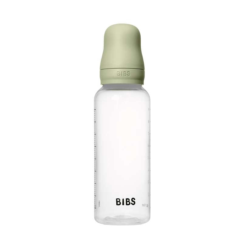 Det komplette BIBS Bottle sæt med sutteflaske i plastik.