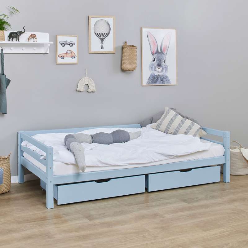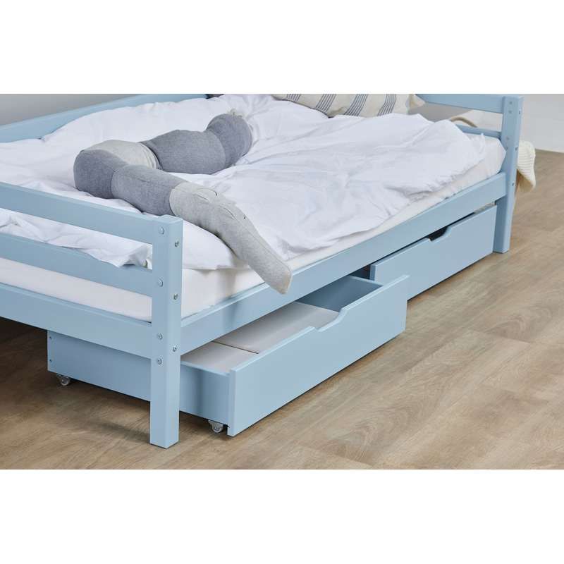 Εκμεταλλευτείτε τον χώρο κάτω από το κρεβάτι για αποθήκευση με το et έξυπνο σετ συρταριών από την Hoppekiks. Το σετ συρταριών αποτελείται από 2 μεγάλα φαρδιά συρτάρια με ρόδες, ώστε να μπορούν να κυλήσουν εύκολα μπροστά και πίσω κάτω από το κρεβάτι. Τα συρτάρια είναι ευρύχωρα, οπότε υπάρχει αρκετός χώρος για αποθήκευση παιχνιδιών, κλινοσκεπασμάτων ή ίσως κάτι εντελώς διαφορετικό. Το σετ έρχεται σε ένα όμορφο μπλε χρώμα, αλλά διατίθεται σε πολλά όμορφα χρώματα που ταιριάζουν με τα κρεβάτια από το Hoppekids.