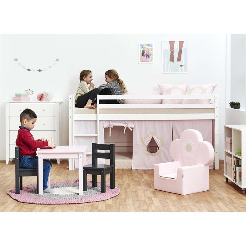 Med dette forhæng fra Hoppekids’ univers, Fairytale Flower, som passer til ECO Dream og ECO Luxury halvhøje senge, etagesenge og mellemhøje senge, skabes et helt specielt gemmested på børneværelset med plads til røverhistorier og hemmeligheder. Dette forhæng danner en hule under sengen som indbyder til hygge, fantasi og leg. Forhænget skaber et udtryk og en stemning på børneværelset. Sammen med de andre produkter i serien, kan der opstå et fantasirigt og kreativt univers.