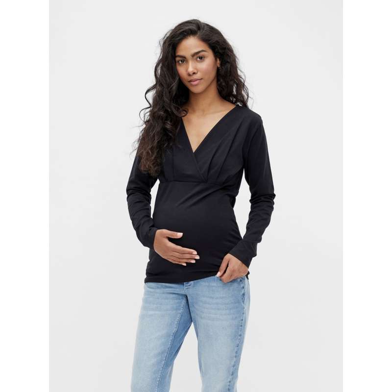 Mamalicious MLEMMA Graviditetstoppe m. Lange Ærmer - 2-pak - Sort/Hvid