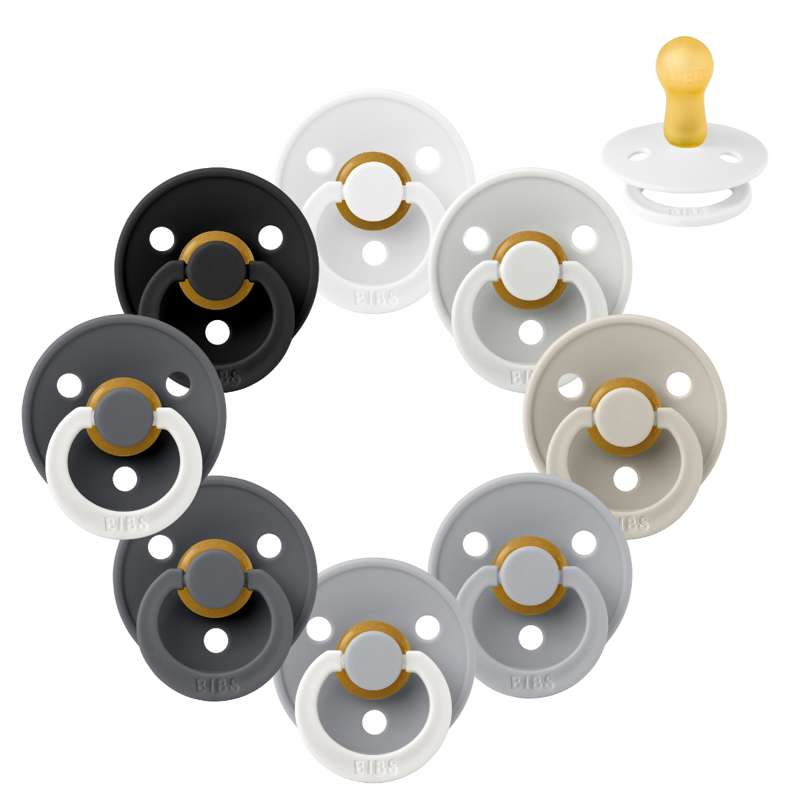 Hermosos y ergonómicos chupetes de estilo retro de BIBS. Cuidadosamente combinados en color y con...