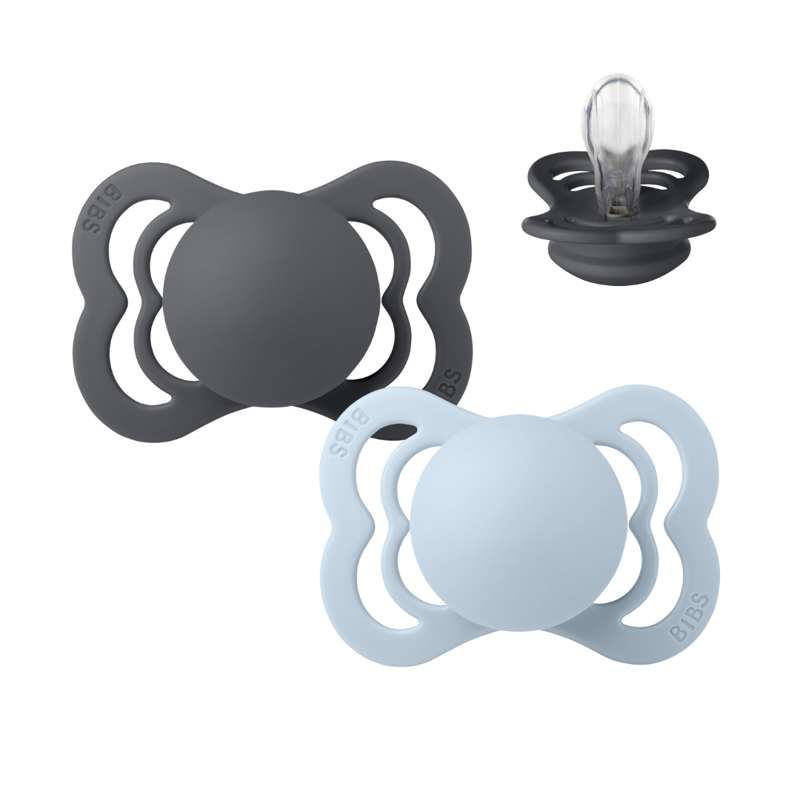 BIBS Supreme Sut - 2-Pak - Str. 1 - Silikone - Iron/Baby Blue