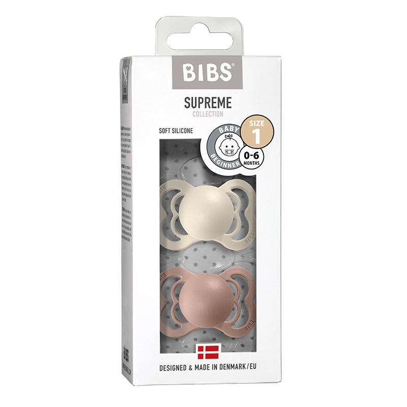 BIBS Supreme Sut - 2-Pak - Str. 1 - Silikone - Ivory/Blush