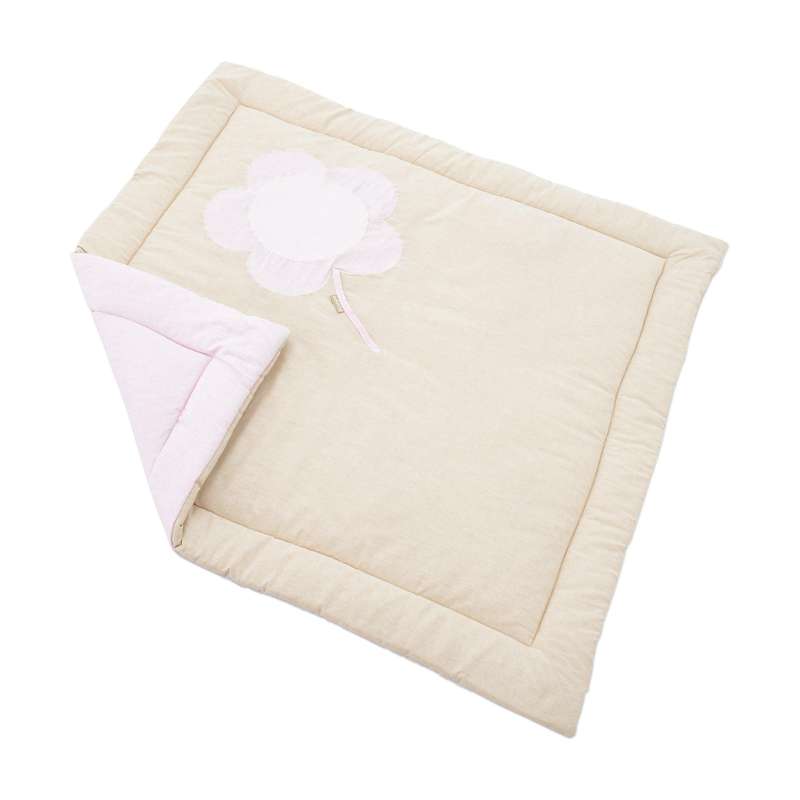 Sødt og lækkert legetæppe i afdæmpede farver fra Hoppekids. Legetæppet giver et komfortabelt underlagt i kravlegården eller på gulvet og samtidig beskytter det dit barn mod kulde og træk. Tæppet er vendbart.