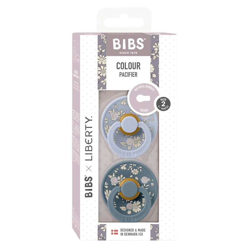 Sucette Bibs Rond Colour - 2-Pak - t. 2 - caoutchouc naturel - Liberty - Capel/Mélange Bleu Poussiéreux