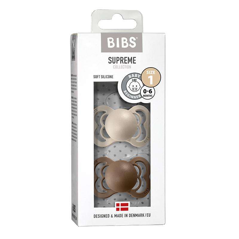 BIBS Supreme Sut - 2-Pak - Str. 1 - Silikone - Vanilla/Dark Oak