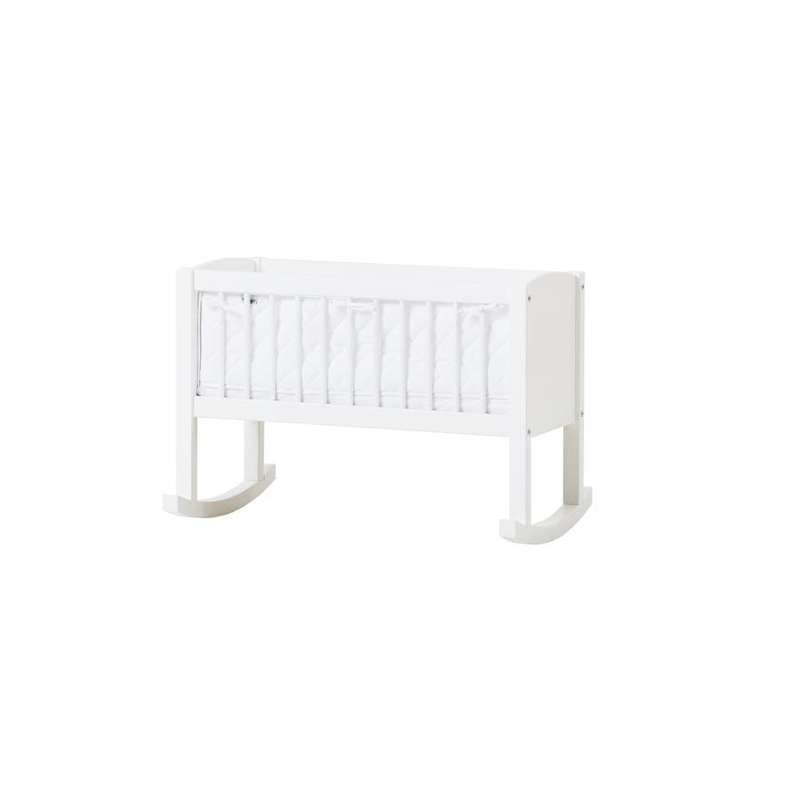 Den bløde, quiltede vuggerand fra Hoppekids tilføjer ekstra hygge og blødhed til vuggen. Samtidig beskytter den baby mod kulde og træk. Vuggeranden monteres hurtigt og nemt og kan vaskes.