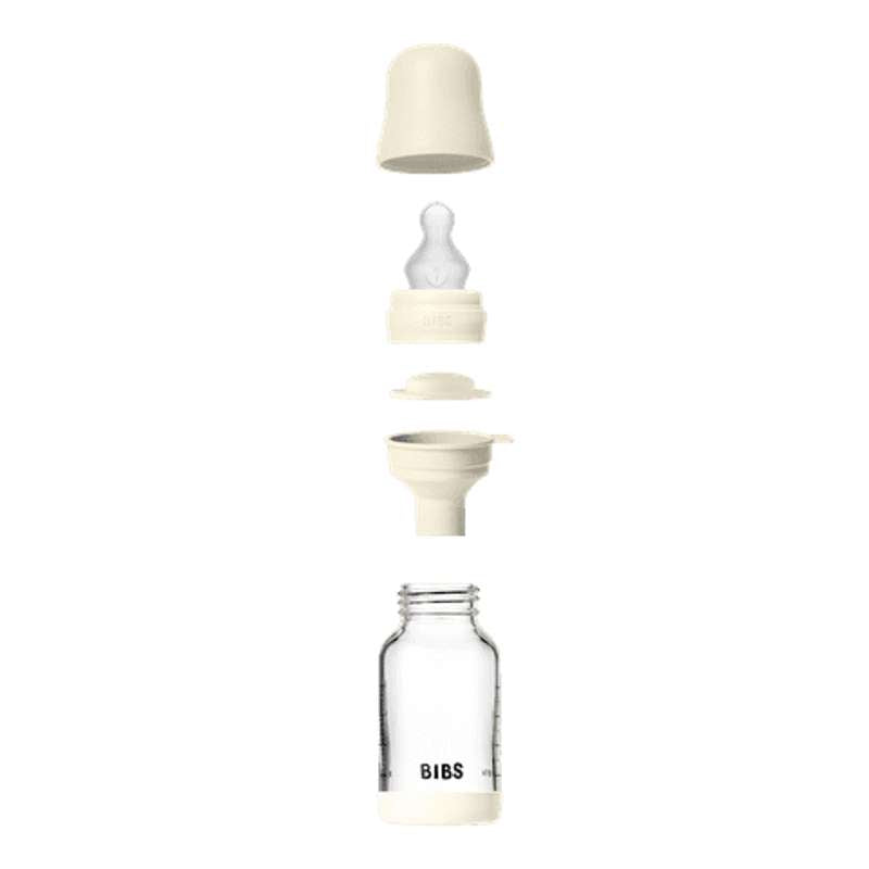 BIBS Bottle - Sutteflaskesæt - Glas - Silikone/Slow Flow/Rund - 120 ml. - Ivory