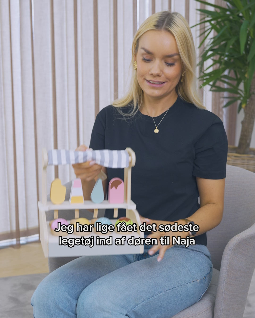 Fin isbutik i træ fra danske Kid'oh. Isbutikken indeholder en masse is, vafler, kugler og ske til at tage isene med.