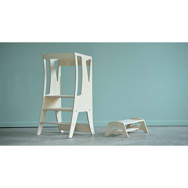 Skildpadden er en skammel lavet af fraskæret fra Læringstårnet Giraffen, og passer perfekt ind under, så den ikke fylder ekstra i køkkenet.