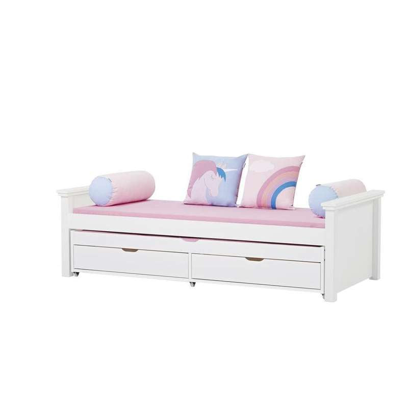 Hoppekids MAJA DELUXE - Juniorseng m. Mellemgavl og Udtræksseng - 90x200 cm. - Hvid