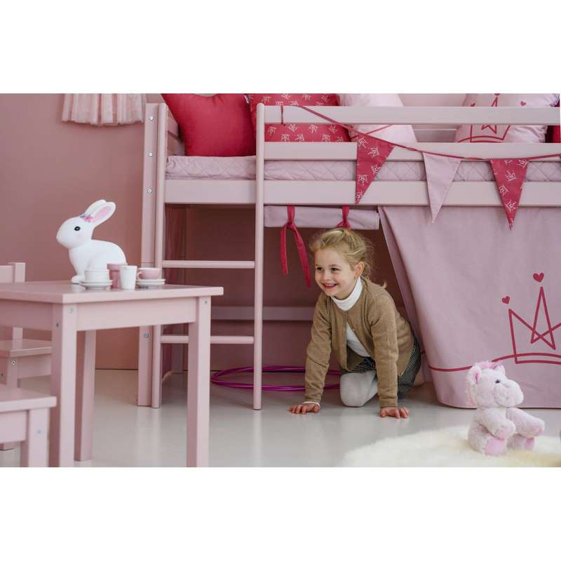Der var en gang en hule, under en seng, bag et forhæng, inde på et værelse og her fandt magiske eventyr sted. Med et forhæng fra PRINCESS universet fra Hoppekids er en seng ikke bare en seng. I stedet bliver pladsen under sengen til et helt særligt sted, hvor kun fantasien sætter grænser. Forhænget passer til både ECO Dream og ECO Luxury sengene fra Hoppekids og fås til 70x160 cm og 90x200 cm senge. Forhænget er Oeko-Tex certificeret og kan vaskes ved 30 grader. Hulen bag forhænget indbyder til leg og magiske eventyr, men har også plads til ro, sjove røverhistorier og hemmeligheder. Lad fantasien forvandler sengen til et skib, et slot hvor prinser og prinsesser bor eller måske noget helt tredje. Hvis det skal være ekstra hyggeligt, kan hulen indrettes med lyskæder, puder og madrasser.