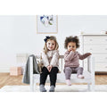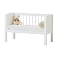 Vuggen kan ombygges til en smart bænk, når den ikke længere skal være soveplads. Det forlænger brugstiden på vuggen væsentligt – og når lillebror eller lillesøster ankommer, så kan bænken nemt bygges tilbage til en vugge igen.