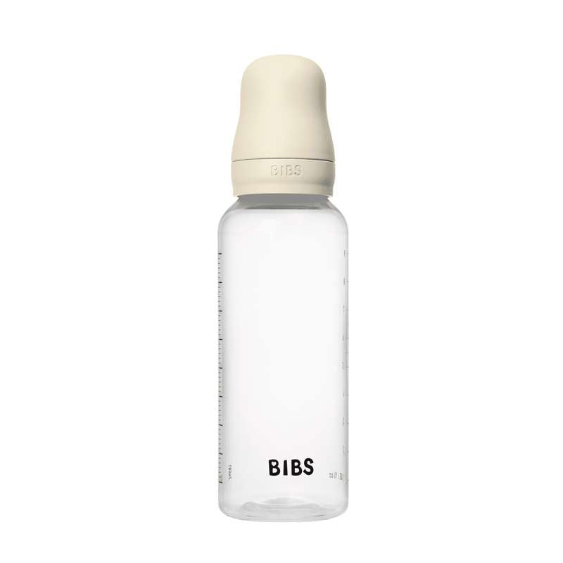 Det komplette BIBS Bottle sæt med sutteflaske i plastik.