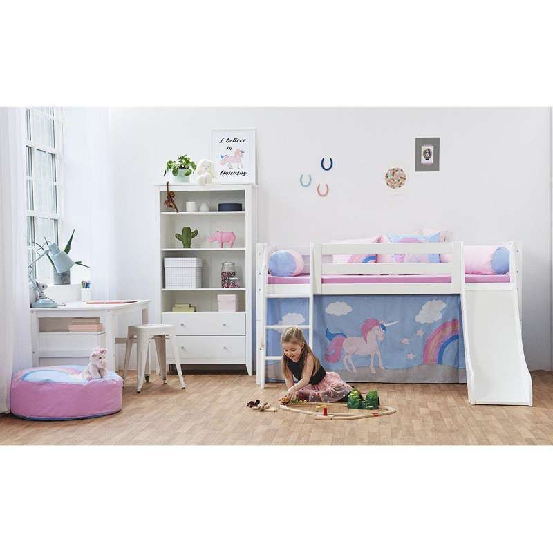 Hoppekids ECO Luxury - Halvhøj Seng m. Rutsjebane - 90x200 cm. - Skrå Stige - Fleksibel Indlægsbund - Hvid