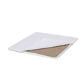 Madrassen til kravlegården med betræk i størrelse 80x86 cm fra Hoppekids. Madrassen har et toplag af hørfilt, hvilket giver øget komfort og isolerer mod kulde.