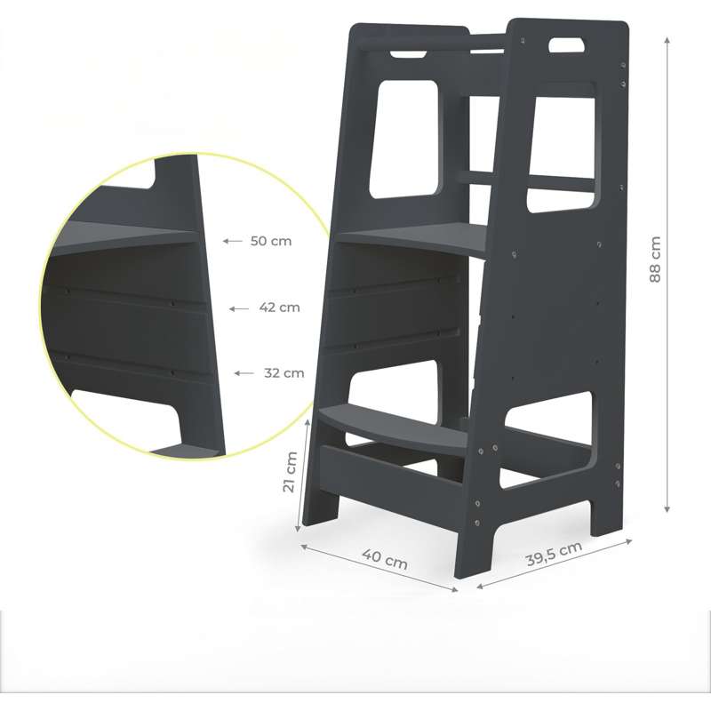 {{3c27b2b2dea475fd0b559f564e86d6e25}} Torre di apprendimento in legno grå è et un mobile multifunzionale, progettato per fornire ai bambini una piattaforma sicura per partecipare alle attività quotidiane in cucina. La torre di apprendimento è realizzata in legno solido e può essere regolata in altezza per seguire lo sviluppo del bambino. È ideale per promuovere l'autonomia e le abilità motorie dei bambini, poiché consente loro di partecipare a attività come cucinare o lavarsi le mani. Et scelta elegante e pratica per ogni casa con bambini piccoli.