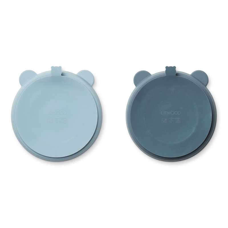 Liewood Stacy Skridsikker Ruminddelt Tallerken - 2-Pak - Sea Blue/Whale Blue