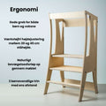 - Lynhurtig værktøjsfri højdejustering** – ståpladen kan nemt tilpasses barnets højde, så tårnet vokser med barnet.