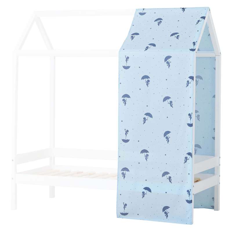 Med hussengs-forhænget fra Ole Lukoie kan du nemt skabe en hyggelig og tryg atmosfære på børneværelset, og i sengen. Forhænget skaber en huleagtig stemning i den ene ende af sengen, uden at lukke helt af for resten af værelset. Forhænget har det fineste blå farve med print af Ole Lukøje med en paraply.