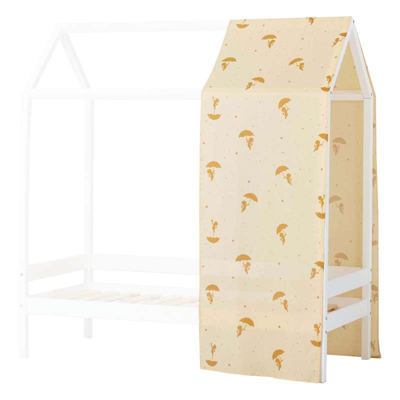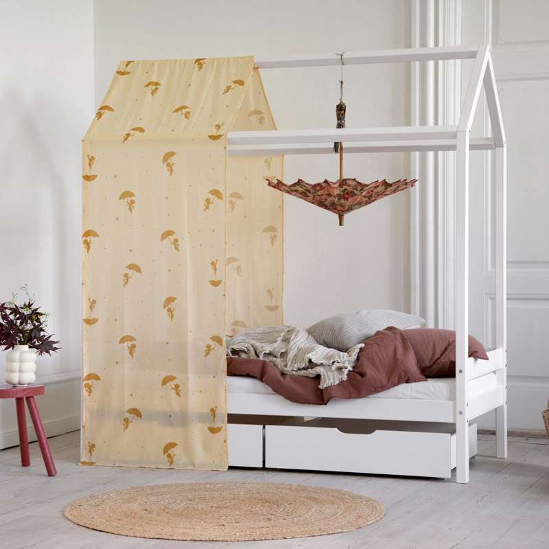 Med hussengs-forhænget fra Ole Lukoie kan du nemt skabe en hyggelig og tryg atmosfære på børneværelset, og i sengen. Forhænget skaber en huleagtig stemning i den ene ende af sengen, uden at lukke helt af for resten af værelset. Forhænget har det fineste gule farve med print af Ole Lukøje med en paraply.