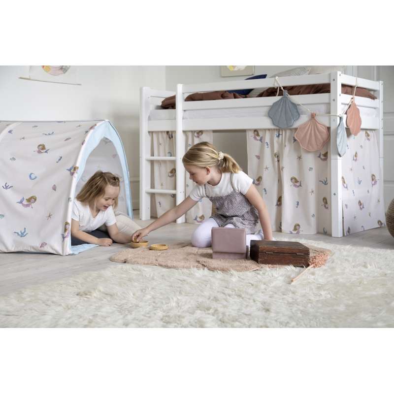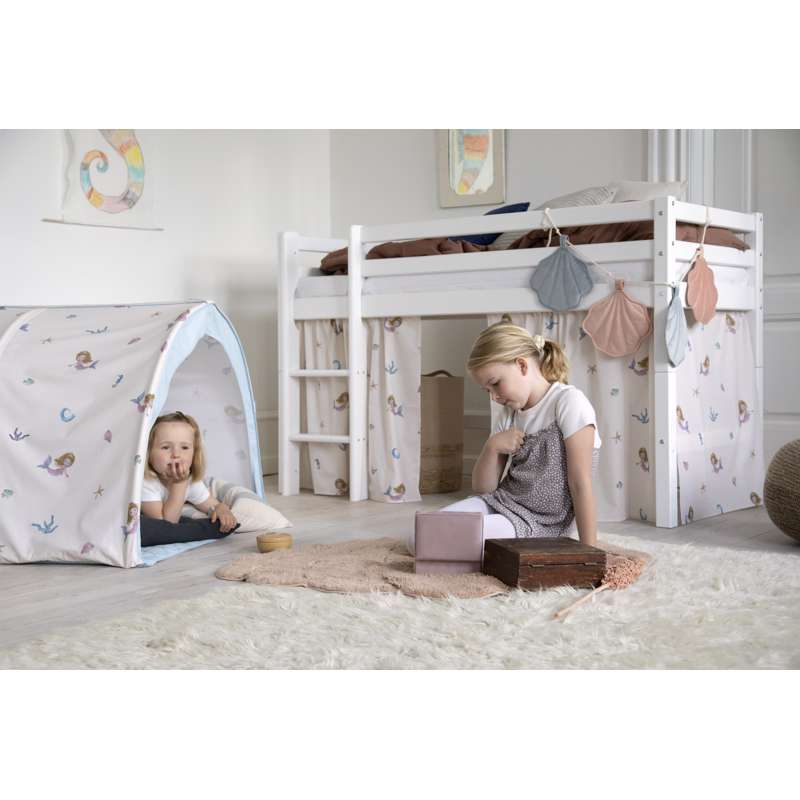 Hoppekids ECO Dream - Halvhøj Seng m. MERMAID Forhæng og Madras - 70x160 cm. - Delbar - Hvid