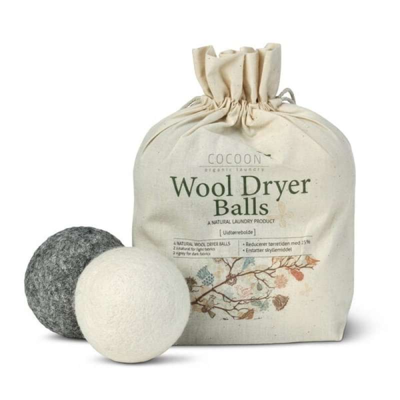 4 økologiske uld tørrebolde: Forkorter tørretiden med op til 25 %, reducerer statisk elektricitet og gør tøjet dejligt blødt – helt uden skyllemiddel.