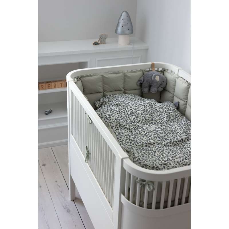 The bedding includes duvet covers and pillow covers in baby size. Both have a good YKK zipper that is hidden so it does not disturb sleep. As an extra detail, the duvet cover has a small leaf sewn on, which serves as a scratch flap for small sleepy fingers.
