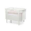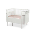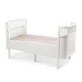 The Sebra bed - the bed that grows with the child. Sebra has the rights to the original Juno bed and has relaunched the classic, timeless, and beautiful bed under the name Sebra bed. It can be used from when the child is newborn and can be expanded as the child grows. The bed is equipped with an adjustable base, and the different combination options make it possible to constantly find new uses. This was also one of Viggo Einfeldt's original ideas behind the Juno bed. This version is painted in the classic and timeless white color. A white Sebra bed is beautiful and versatile in any children's room and can be passed down from generation to generation. The Sebra bed is treated with an antibacterial, environmentally friendly, and non-toxic wood paint, which ensures a cleaner indoor climate and protects the child's health. The wood paint has been independently tested according to the restrictive JIS Z 2801 standards, among others, for E. coli bacteria.
