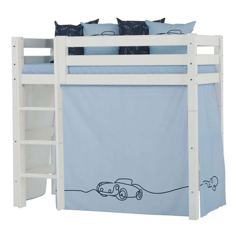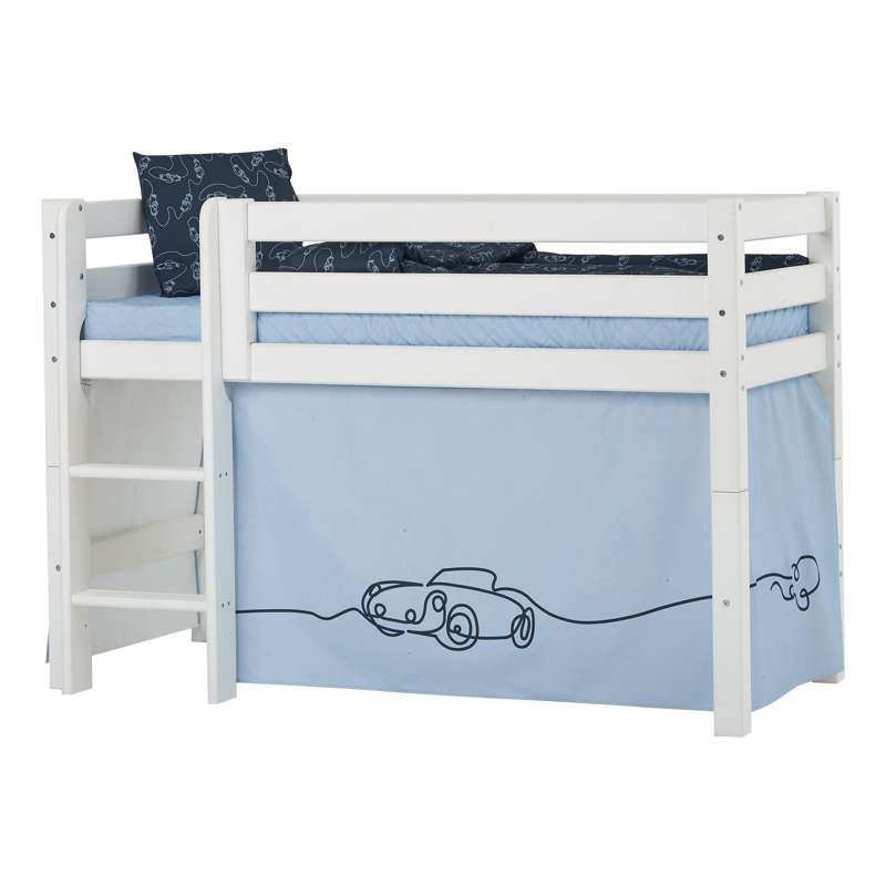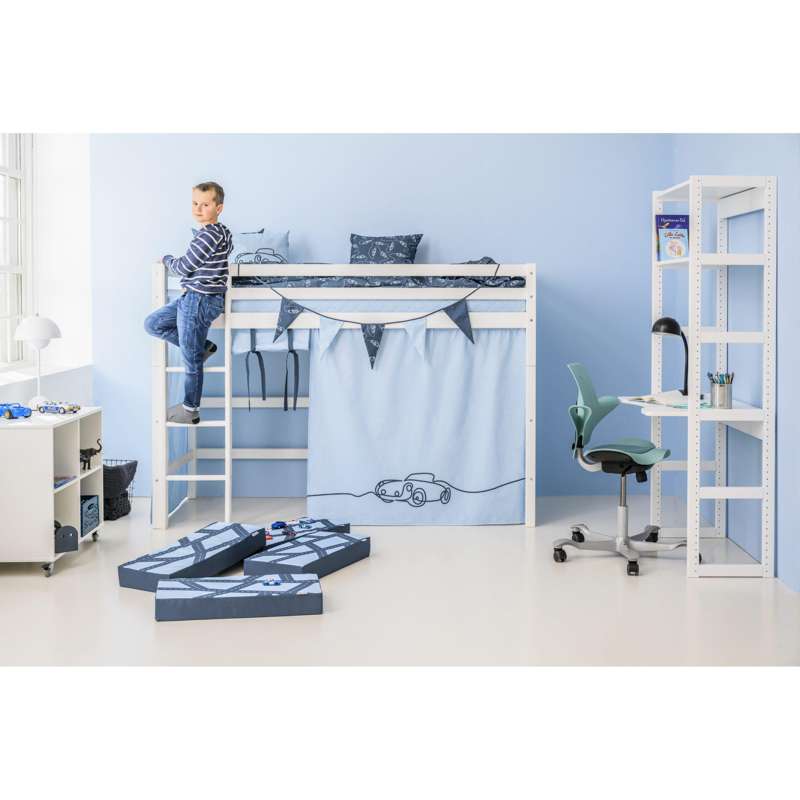 Sejt CARS forhæng til ECO Dream og ECO Luxury senge fra Hoppekids. Med det smarte forhæng bliver pladsen under sengen til et magisk sted, hvor kun fantasien sætter grænser. Hvad enten det er tid til fordybning, eller leg og eventyr, er hulen bag forhænget helt perfekt. Hvis det skal være ekstra hyggeligt, kan hulen indrettes med bløde tæpper, puder, lyskæder og andre hyggeting. Forhænget passer til halvhøj senge og etagesenge fra Hoppekids. Forhænget er en del af CARS universet hvor der er fuld fart på de flotte tekstiler. I universet er biler det helt store tema og det enkelte design og de flotte blå farver, gør universet helt uimodståeligt for enhver lille bilentusiast.