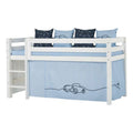 Størrelse: Forhænget fås i to størrelser, til senge med mål 90 x 200 cm og til senge med mål 70 x 160 cm og fås til både halvhøj senge, køjesenge og mellemhøj senge.